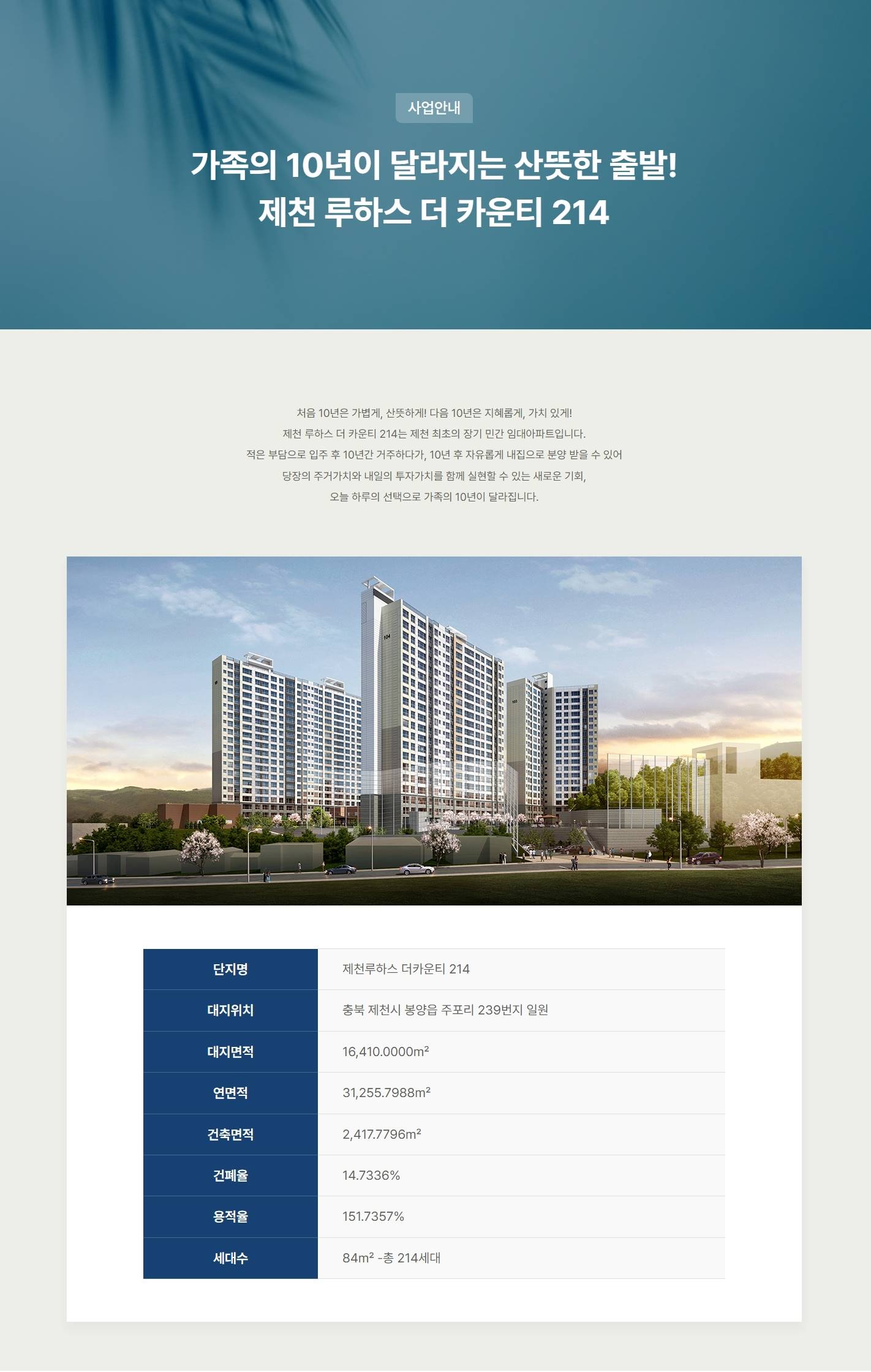 제천에서 보기 드문 총 214세대 규모로 조성되어 관리비 절감 효과는 물론, 지역을 대표하는 새로운 랜드마크로 기대를 모읍니다.